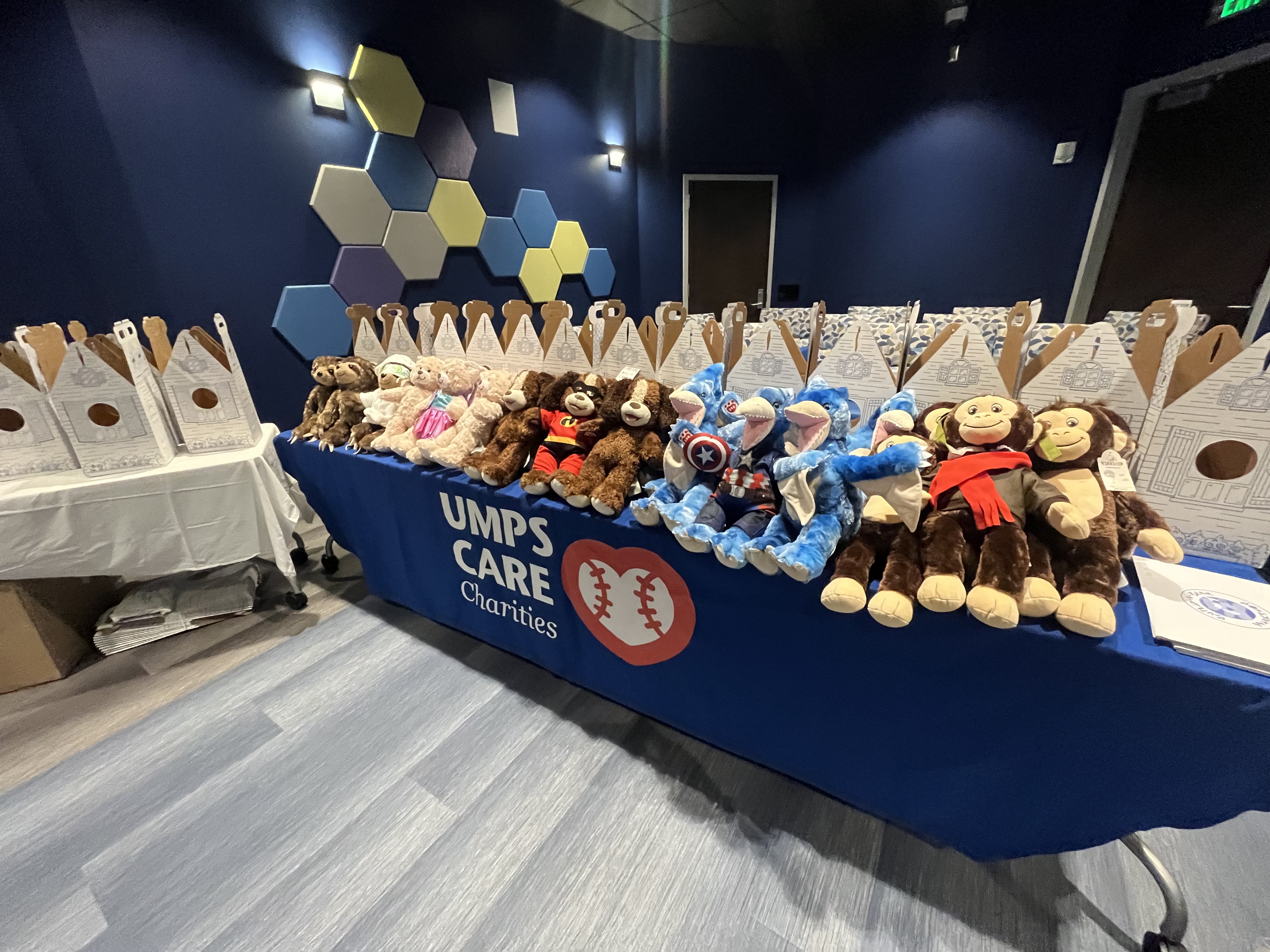 (L to R) MLB umpires Ryan Blakney, Paul Emmel and Lance Barrett with Child Life staff from Children’s Colorado Hospital, UMPS CARE volunteers and Jimmy Volpi and his special crew of volunteers from the Arby’s Foundation!